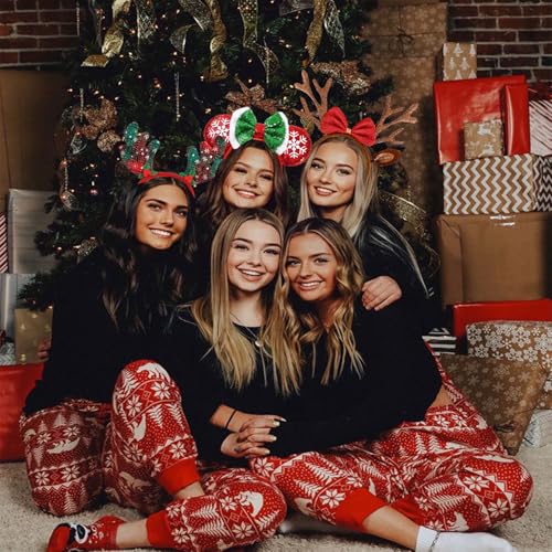 Brown Christmas Antlers Headband Reindeer Ears Headbands for Women Christmas Holiday Hair Accessories for Women
