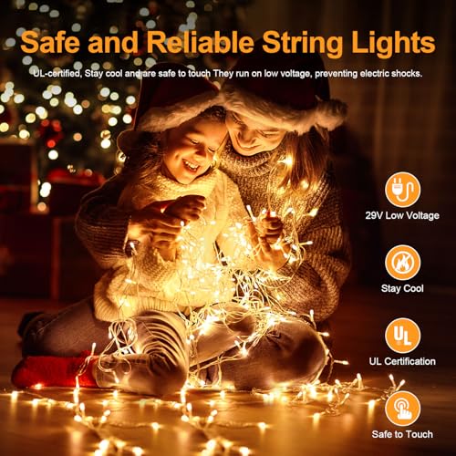 Upgraded Christmas Tree Lights: JIXXULVU Plug in LED Christmas lights are made with high-quality copper wire, PVC-enhanced cords, and LED bulbs to improve durability. LED bulbs save up to 90% more energy than traditional bulbs