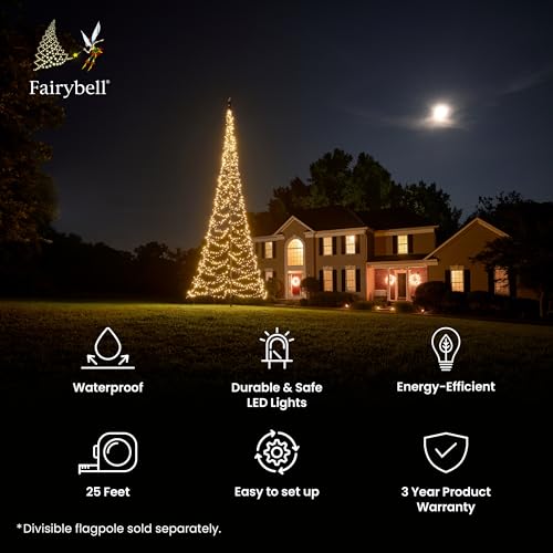 Fairybell – Flagpole LED Christmas Tree – Outdoor Christmas Decorations – Warm White – 1,500 LED Tree – 25ft – Suitable for Existing Flagpoles