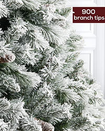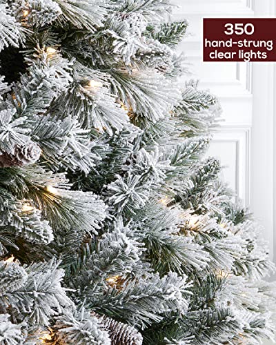 Pre-Lit Christmas Tree 6ft Snow Flocked, Artificial Spruce, 350 Clear Lights, Feel Real Hinged Xmas Trees