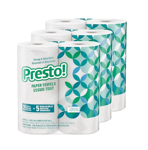 Amazon Brand – Presto! Kitchen Paper Towels – Flex-a-Size, 128 Sheet Family Roll, 6 Rolls (3 Packs of 2), White